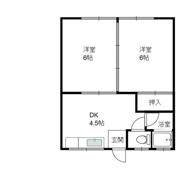 | 間取り | 2DK | 間取り詳細 | 洋6帖×2 キッチン4.5帖 |