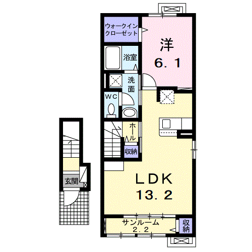 | 間取り | 1LDK | 間取り詳細 | 洋6.1・LDK13.2 |