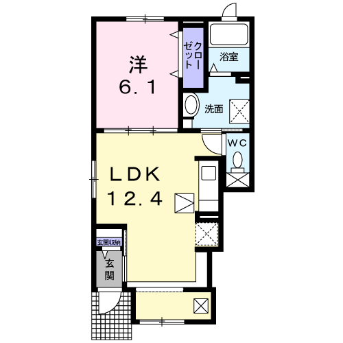 | 間取り | 1LDK | 間取り詳細 | 洋6.1・LDK12.4 |