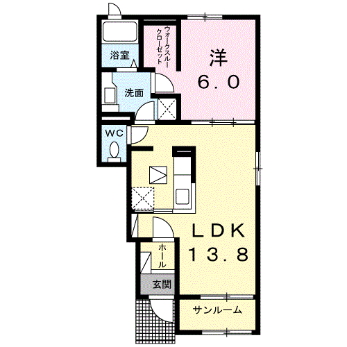 間取り | 1LDK | 間取り詳細 | 洋6.0・LDK13.8 |